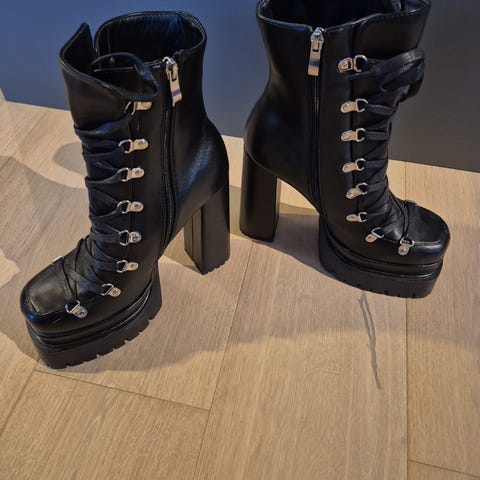 Disse råkule skoene står bare og støver ned i skapet, så tenkte de kunne finne et nytt hjem. De er ikke mye brukt, men har noen bruksmerker. Stoffet er i semsket skinn.