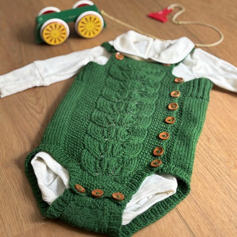 Kjempesøt hjemmestrikket romper, antar rundt størrelse 74.