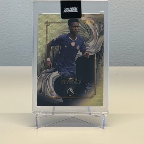 Har også masse andre kort innenfor 2023-24 Futera Unique World Football, Merlin og Premier League Prizm.