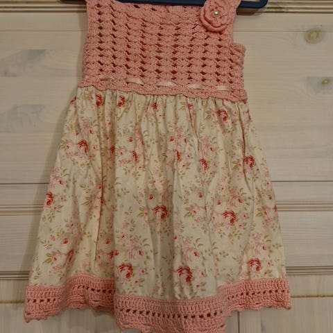 Overdel er heklet. Lukkes med 3 stk. Knapper