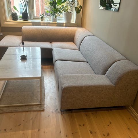 Sofaen er en modulsofa som gjør den enklere å frakte, enkel å montere.