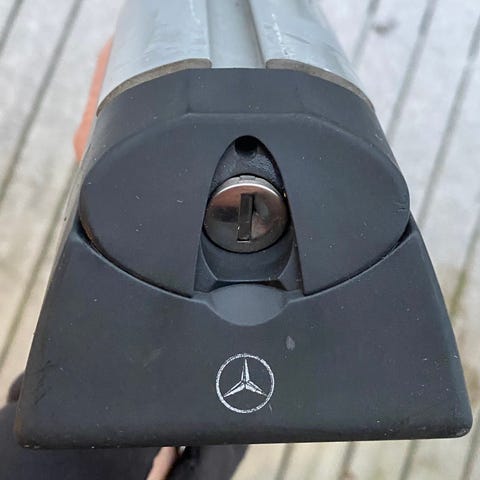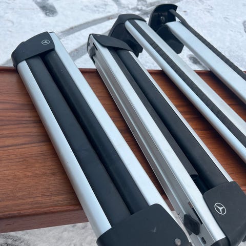 Originalt Mercedes takstativ til C modell. Stativet er av type med skruer og kan justeres sideveis. Lite brukt, har stått på en c350 e. Følger med 2stk nøkler.