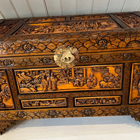 Mengde med forskjellige typer kister. Alt fra store til små, buet,firkantet, fine rosemalte og veldig fine kamf kister med nydelige utskjæringer.