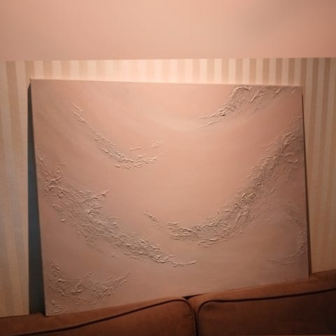 Stort abstrakt akryl maleri på 100x80 cm. "Falling inn" med brune, hvite og gulltoner. Jeg lager spesialtilpasset ramme hvis ønsket.