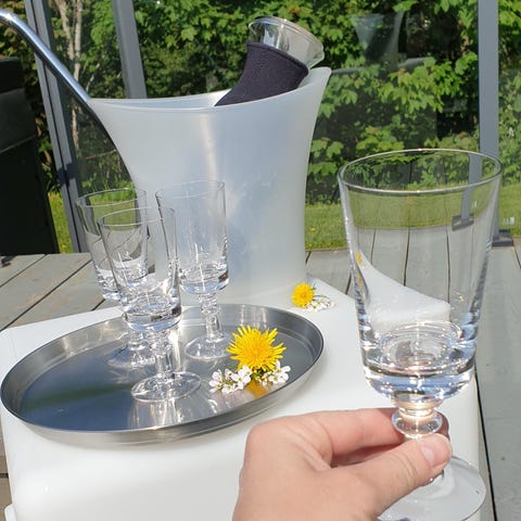 7 ølglass og 6 dram glass fra 60-tallet. Ølglass 18 cm høye, akevittglass 14 cm høye. Ølglassene rommer 2,5 dl. Ingen skader. Selges helst samlet.
