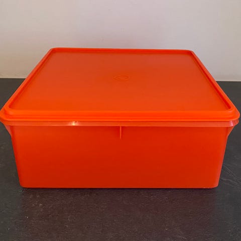 Retro/ vintage matboks i plast. Måler 13,5x18,5 cm. Høyde innvendig 8 cm. Kan sende