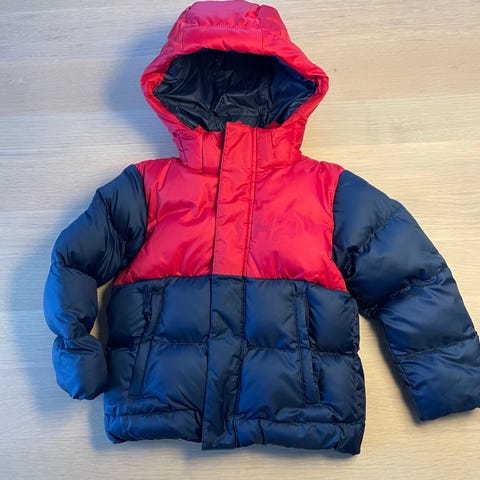 Delvis fleece på innsiden, hette kan tas av med knapper.