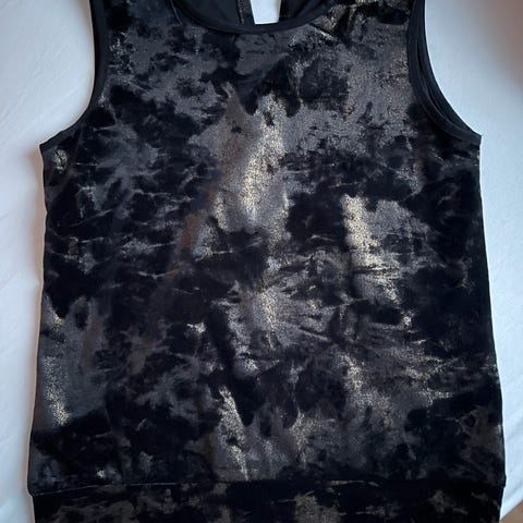 Kjøpt i Milano topp, tunika, lang T- shirt, pent brukt et par ganger, kan brukes til fest eller daglig, stoffet er med glans og strach, ikke for tynn, holder formen fint. Lengde er 85 cm, brystet er 47 cm, A formet uten midje, nederst 78 cm. Kan sendes