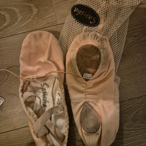 Dansesko i skinn, brukt kun på fire forestillinger. Str 10(40).