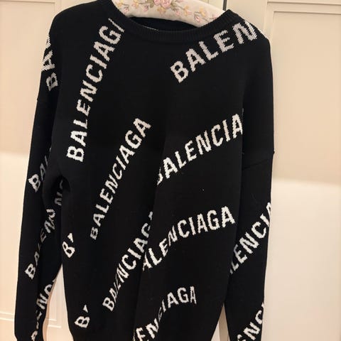 Selger superfin og ubrukt genser fra Balenciaga. World Food Programme Crew Neck i sort med hvit logo. Genseren/kjolen er laget av 99% ull og 1% polyester.