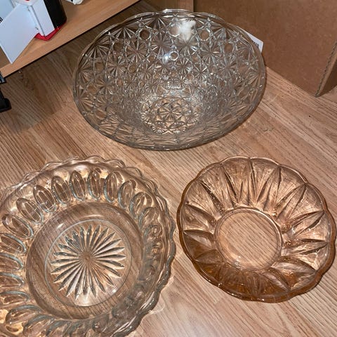 Selger 2 like glassboller. Brukt 1 gang til ett selskap.23cm bred og10 cm høy. Selges samlet 350 kr