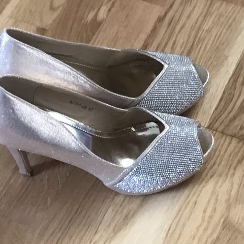 Pensko i sølv str. 36. Kun brukt en gang.