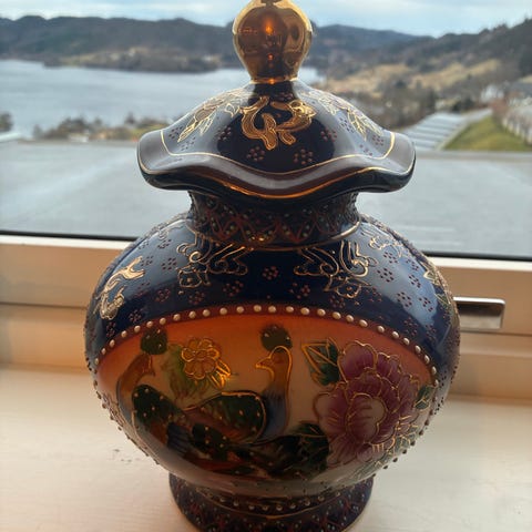 Krukke i porselen , ingen skader , søte detaljer , sender gjerne mot porto 69,- postnord eller gjennom fiks ferdig
