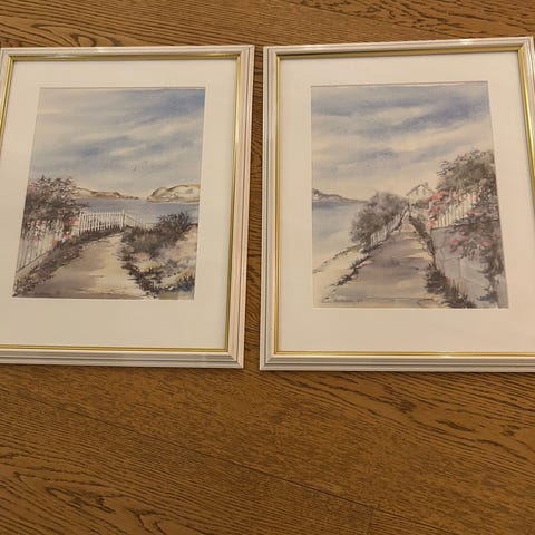 Nydelig akvarell av Torunn Kjemphol 1988 med en meget solid og tung ramme i gullfarge.