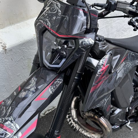 Har også svart og hvit lyktkåpe. Har andre deler som baklykt, større bremsepedal, tanklukt ventil, goprofeste til hjelm og blinklys