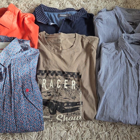 Skjorter og T-skjorter i herrestr S, XS eller tilsvarende.