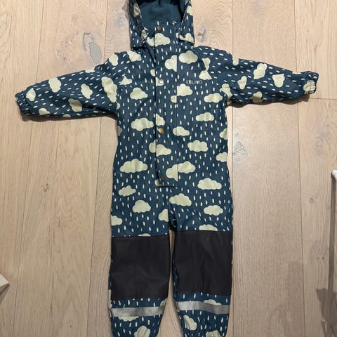 Reimavårdress str 80. Godt brukt men mye bruk igjenn, litt slitt rumpa, mellom bena, den ene springen til og ha under skoen er ødelagt.