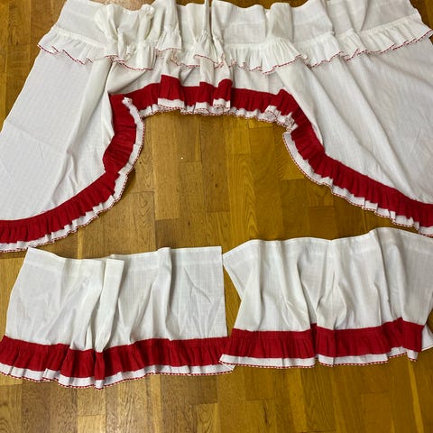 Gardinene er noe gulere i virkeligheten, type lys gul. 2 stk gardinbånd følger med.