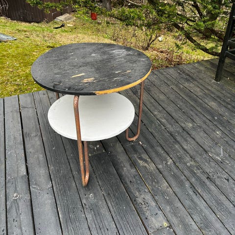 Selger kult oval bord med tilleggplater solid og god salong stuebord . Den øverste platen ble halv poset den ble enda finere men kan poses alt og males.