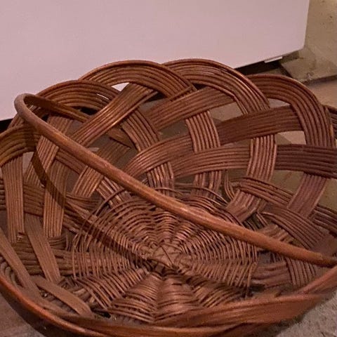 Ligner den de bruker til handlekurv på farmen. Soppkurv kan den sikkert brukes til. Strikketøy