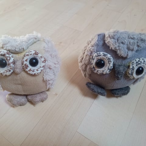 To søte rangler fra Søstrene Grene. Rev og vaskebjørn. Så vidt brukt av tvillingene våre.