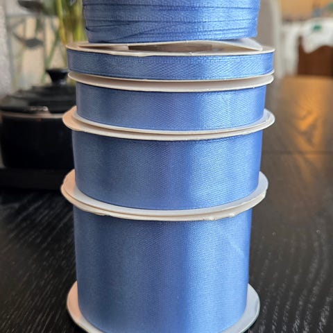 Satengbånd med ståltråd, er tatt av, men fortsatt endel igjen. Selges 40 kr