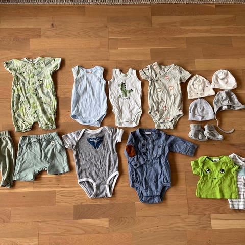 Pent brukte klær i størrelse 68, noe er 74. 19 plagg!