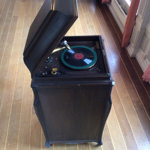 Sjarmerende antikk gramofon, med 7 plater vurderes solgt
