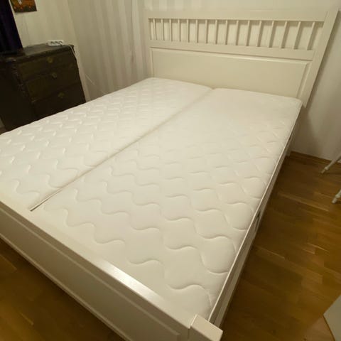Kjøpt fra Jysk i 2021 for 5000kr, men ikke lenger nødvendig. Veldig behagelig og god stand, lite brukt. Liten sprekk i det ene hjørnet men var der fra begynnelsen. Possible to buy the two beds together.