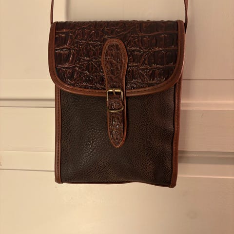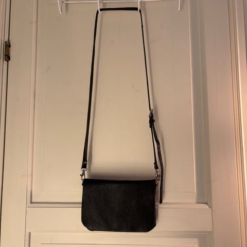 Jeg selger en fin vintage skinnveske med skulderrem som kan reguleres. Ingen slitasje.