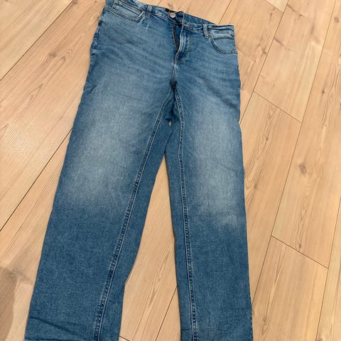 Den er straight i formen, og størrelse w28, L33. Passer en S/M. Pent brukt. Er ikke lang i beina, selv om det er L33.