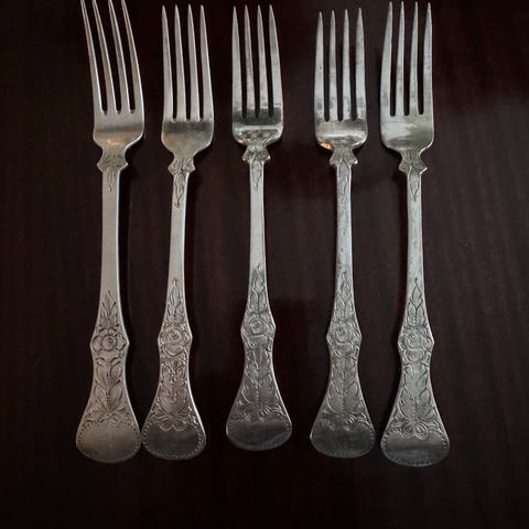 Vintage 3 stykker Flat rose gaffel, stemplet 20, 17 cm lang.