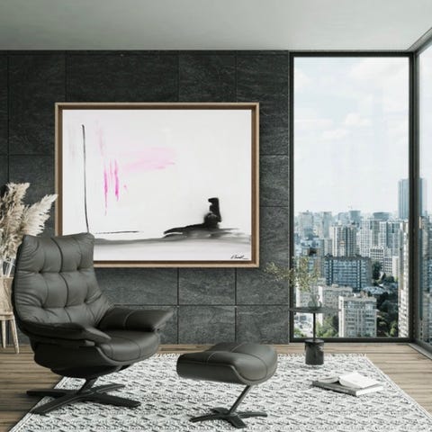 Maleri med blå farger, størrelse 60x80 cm. Maleriet har en moderne stil med teksturerte elementer og geometriske former.. Egnet for innendørs dekorasjon.