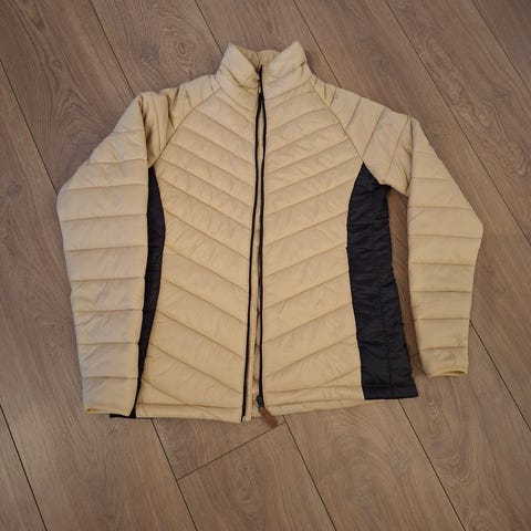 Pen brukt jakke selger. Jakke kan justeres i midjen med 2 knapper. Den kar 2 lommer og en lomme tilleggs i ytterste sida. Mangler en hatt.