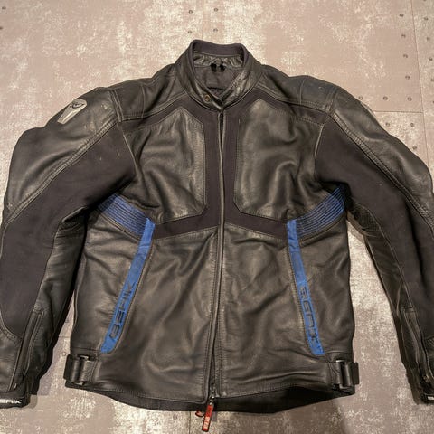 Competition 2 mc jakke selges. Veldig tung og god kjørejakke. Godt brukt. Øverste knapp i kragen mangler. Bortsett fra det er den hel og fin. Str L