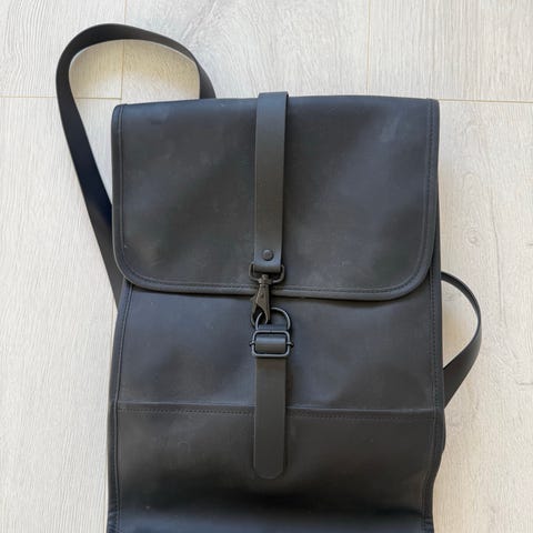Godt brukt Rains sekk (mini) med fortsatt en leve periode igjen. Fått et lite rift nede.