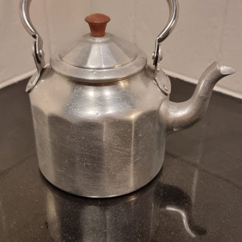 Nydelig blå vintage emaljekjele selges. Fungerer på alle stekeplater, inkludert induksjon.