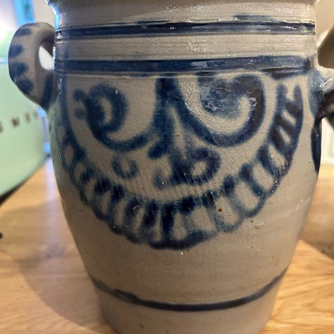 Flott krukke selges - 6 liter. Har en liten overfladisk sprekk i porselenet på undersiden. Høyde: 18,5 cm og diameter 23 cm. Må hentes