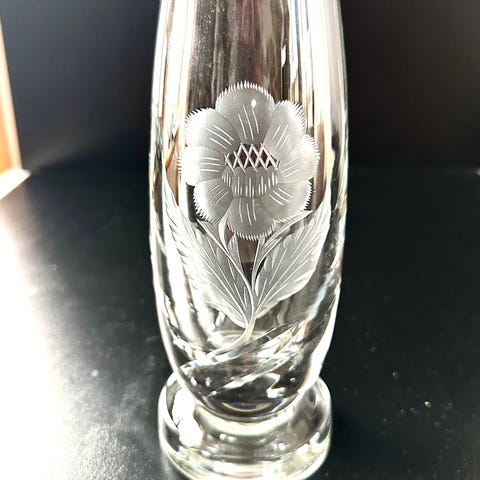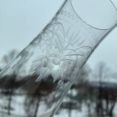 Sett med 12 antikke/ vintage etset krystall glass