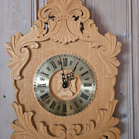 Meget velholdt vegg klokke fra snekkermester Haugland i Arna. Kjøpt ny i 1996. 100 prosent ok og pen klokke som er i ubehandlet tre. Moderne urverk m batteri. Fremstår som ny. En eier. Seriøse bud vurderes.