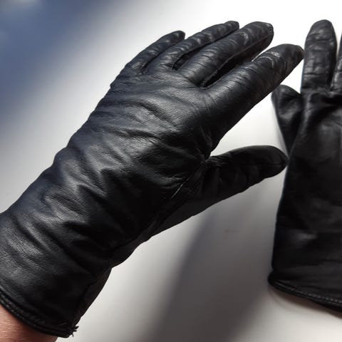 Retro Svarte skinnhansker størrelse M selges