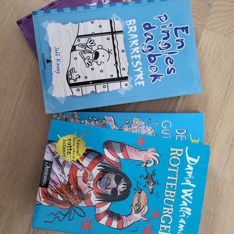 Pent brukte barnebøker selges samlet til kr 200.
