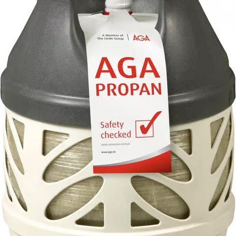 Tom 5kg Propan flaske som kan fylles/ byttes i ny. Tom 5kg koster 849 så du sparer noe lapper med å plukke denne opp