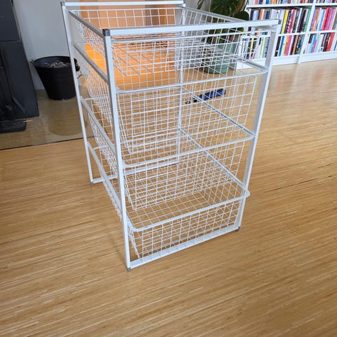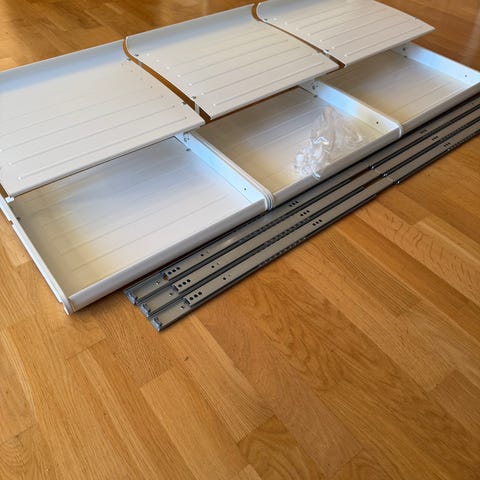 En fra Elfa til montering mellom to hengeskinner. Ideel for sko med hæl.