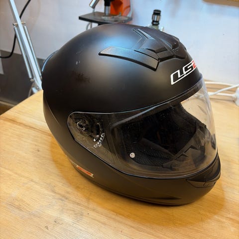 Hjelmen har bruksmerker, men er ellers pent brukt.