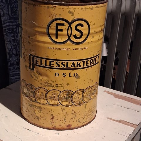 Stort gammelt blikkspann /pølsespann fra Bøndernes salgslag H 35 B 25 cm