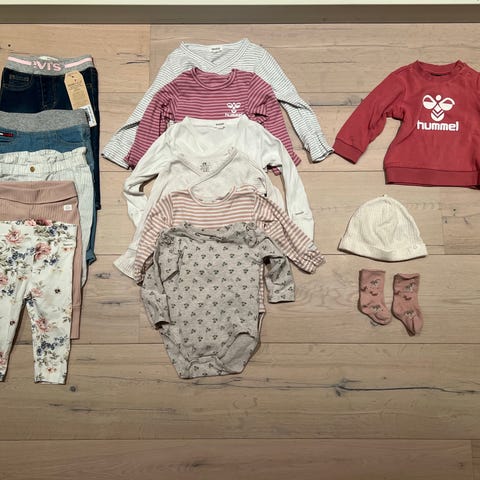 Klespakke med klær i str 68 (samt en dress i 74) selges 300,-