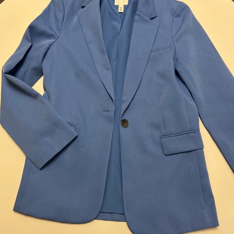 penjakke dressjakke ensfarget lyseblå matchende sett vinterklær vårklær sommerklær høstklær sommer høst selskapsklær bryllup festklær kontorklær kontorantrekk naturlige materialer miljøvennlig tidløs gave