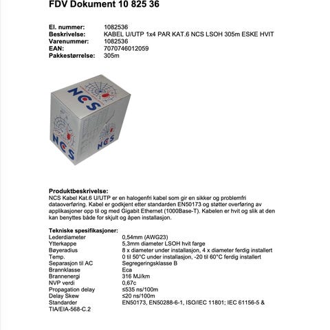 Det står på kabel, vokal lan xlan 350 f/utp-2y 4pr awg24/1 cat6 isotec 1180 1 50575 class fra 350 MHz 0320 ce 03153
