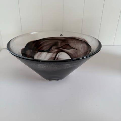 Nydelig keramikk laget av Trude Fjølstad. Dråpeskål, ca 23x19 cm.